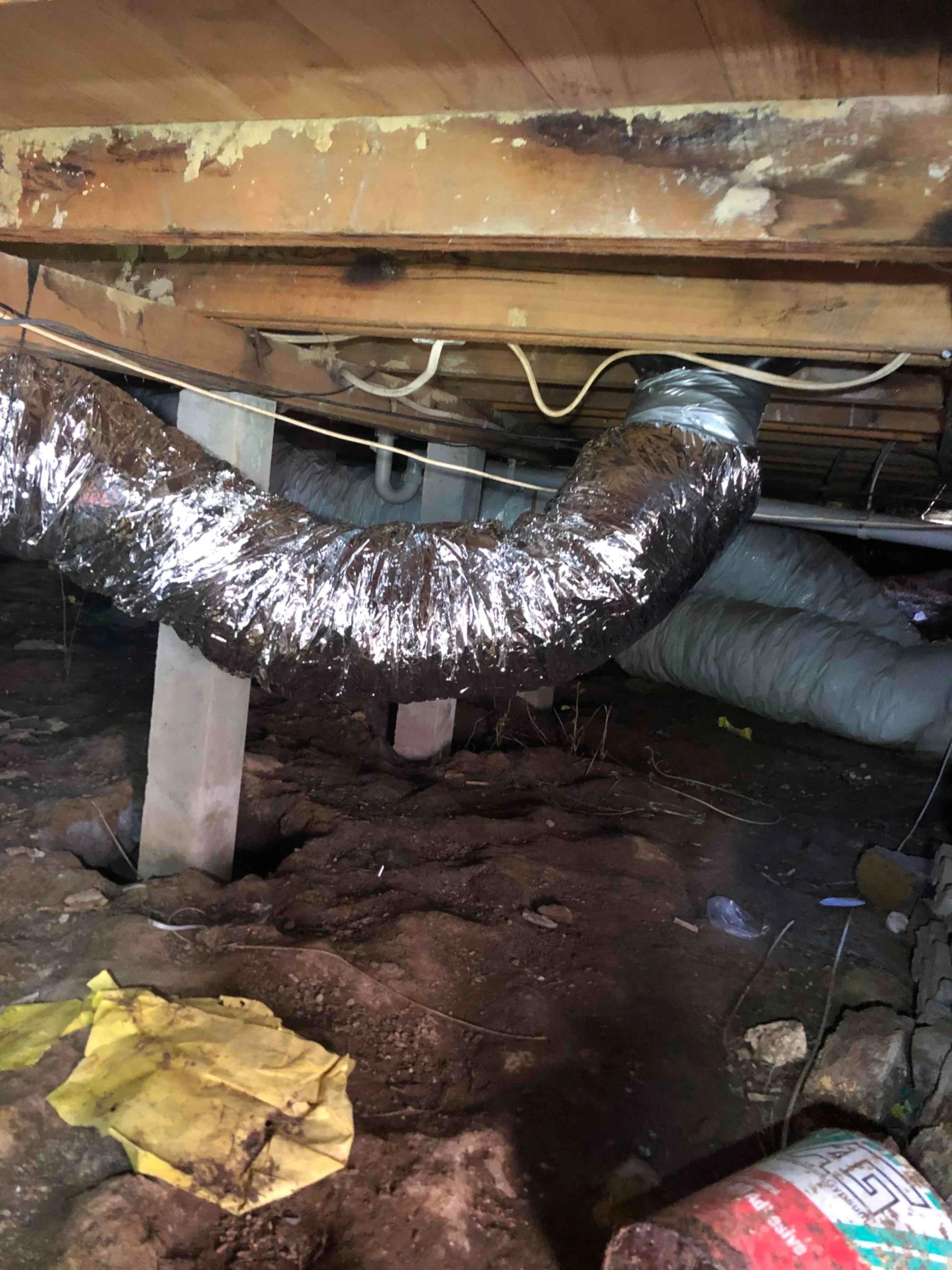 Another common issue that we find is damaged ducts that have rips in them, which allows the air to escape. These tears are commonly caused by rodents nibbling through them. And once you have initial tears, other animals typically find their way into your ducts which further exacerbates the problem. Here’s an example of torn ducts.